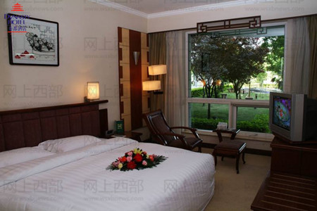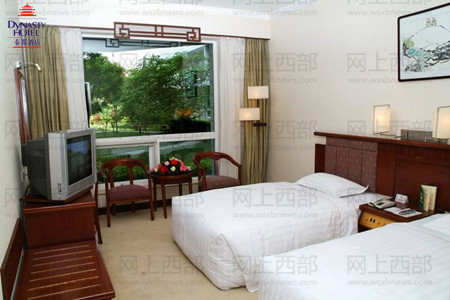 酒店开业时间于1990年7月12日,占地11亩,建筑面积16900平方米。总层数五层,酒店多功能有商务厅,商务中心, 商品部(西北最大齐全的玉器店,瓷器店),大堂吧,休闲茶座,足浴等,能提供较为完善的综合服务。181间客房,其中标准间130间,单间41间,面积20平方米,套房10间,酒店推出一楼花园洋房,可以近距离感受到从客房直接到花园的惬意,鸟儿的鸣叫声及鲜花泥土的清香。餐厅400平方米,150个餐位,西餐厅1个,宴会多功能厅5个,分别为秦皇殿面积:325平米可同时容纳300人用餐。蓬莱阁面积:252平米可同时容纳260人用餐。通瑞阁面积:95平米同时容纳100人会议。(南风阁):65平米可同时容纳30人会议。北凤阁:45平米可容纳20人小型会议。停车场可停放60个车位。