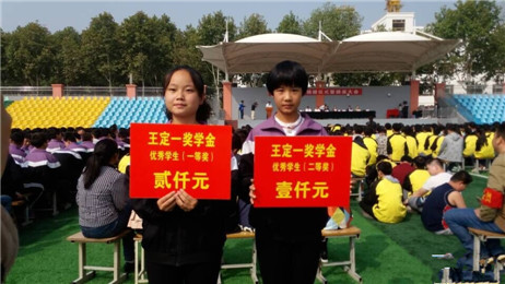 在“王定一奖学金”捐赠仪式上,西安市第64中学的领导高度赞扬了“老校友”王定一捐资助学的善举与壮举,并表示以此为契机,全校师生将以更大的热忱与专心勤奋学习、努力拼搏,不辜负王定一先生的厚望。随后,王定一和与会领导为优秀师生颁发了第一届“王定一奖学金”。
