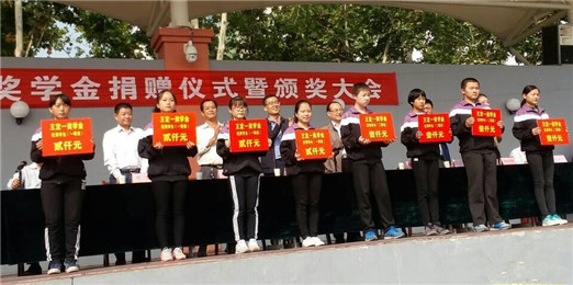 在热烈的掌声中,灞桥区政协委员王定一回顾了自1971年从64中毕业后个人的创业史、奋斗史、发展史,他用大半生的人生经历告诉在座的广大师生:知识改变命运、学习成就人生,教育在人的一生中发挥着至关重要的作用。今天设立的以他名字命名的“王定一奖学金”就是要为更多的母校师生创造更好的学习环境,以此来让“小学友们”安心学习、静心读书,将来做造福桑梓、祖国的栋梁之才。据悉,“王定一奖学金”共计30万元,将分为8年全部用于奖励64中学的优秀教师、学生。