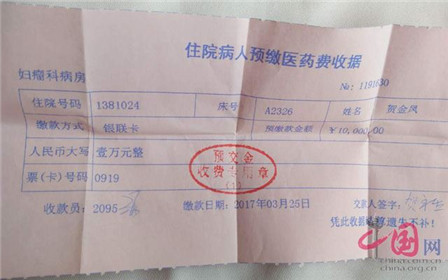 2016年11月11日晚,贺金凤回家便说肚子难受。辗转几家医院后,医生诊断为盆腔巨大肿物,大约24.5cm*20.0cm*12.5cm。