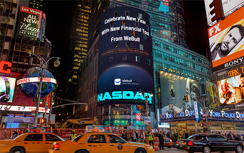 2017年初,微牛(Webull)荣登纽约时代广场纳斯达克大屏。