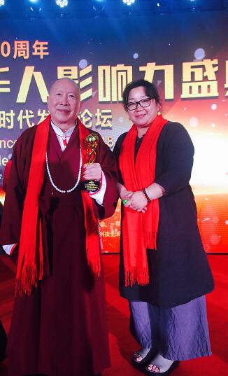 中国改革开放40年来,全球华人华侨与会代表在各自领域积极发展,独具特色,独领风骚。而儒释道三家作为中国传统文化,是人类身心灵健康成长不可缺失的基本素养,人类是最大的生产力和生活资料,重视灵性成长是中国文化复兴的重要因素。弘扬正能量,传播真善美,为世界和平,为社会和谐,为人类和善,他们默默奉献,“不为自己求安乐,但愿众生得离苦”的无我利他之情怀,令人敬仰。佛法渊源流长,主张诸恶莫做,众善奉行,内求自省,无常苦空。让人类生活美好的同时,能觉知生命的灵性解脱。大会英才济济,不一一表述,谨介绍一位热爱和平的美籍華人、美国飛虎隊老兵、美國總統特朗普顧問陳科志先生,他致力推廣世界和平、為中國抗戰、年屆93歲扔擔任芷江飛虎隊紀念館顧問,在此盛会,荣获全球華人影響力終身成就獎。