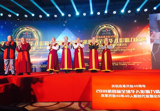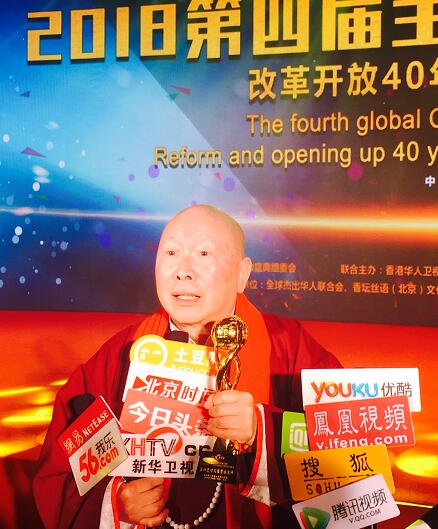 中国都市新闻网(记者:廖佳) 2018年7月8日下午2:00 .在中國首都北京,位于长安街北沿线的北京國際會議中心隆重舉行〝2018第四屆全球華人影响力盛典-改革開放40年40人新時代發展論壇〞, 大会盛况空前,气势宏大,隆重庄严,气氛友好热烈,与会贵宾盛裝出席,走红毯,喜氣洋洋。来自全球各国几十位华人华侨代表个个精神百倍,意气风发。莅临贵宾:中国國際商会主席謝京生先生、卫小武主席、联合国亚非委员会主席郑海精、美国总统永久顾问、美國飞虎队老兵陈科志,英国银行家马克、美国摩根斯坦利副总裁约翰,澳大利亚塔州中国佛学院院长、金刚禅院国际总会会长、澳大利亚塔州中国和平统一促进会分会会长,世界佛教青年僧伽会会长智及維摩詰宗師、香港儒释道功德会始创会会长黄维溢、深圳市宗教文化研究会易道会长、深圳市宗教研究会副主席张晔、加拿大DEPt投资公司兰姆、中國社會科學院文学博士、北京雍和宮佛學院经师嘉木扬·凱朝、中国国学院院长弘二,少林寺僧人释延琳、艾丰、等文化大师做精彩发言,阔论人类命运共同体,不可分割。参会企业家有《爱国者》冯军、绿色养生李丽莎、任永明等等诸位贵宾上台自我介绍本领域的成就及一带一路沿线推出的项目,讲述华人华侨助力祖国一带一路的建设。40年改革开放40位杰出代表来自全球各国华人华侨,他们在中国40年改革开放历程中,在不同领域做出卓越贡献,40余位代表受到大会荣誉颁奖,其中,来自澳大利亚塔州的智及大师成为來自全球各地、各領域的40位華人华侨杰出得獎者之一。