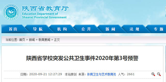 昨天(9月21日),陕西省教育厅发布《陕西省学校突发公共卫生事件2020年第3号预警》。