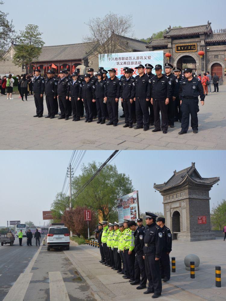 阵为活动保驾护航;志愿者遍布各个景区,为游客提供帮助和服务。公安、交警整装待发