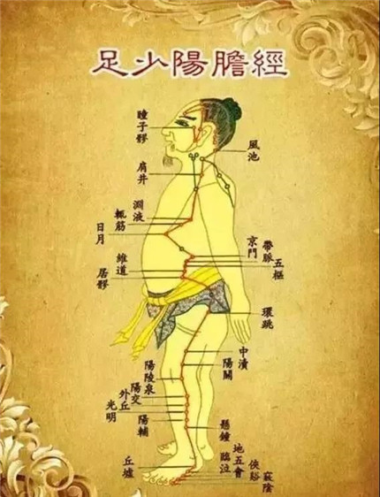 胆经走于体侧,贯穿上下。用于保健时,只敲打左右大腿即可,适合治疗抑郁、肥胖、更年期综合征。