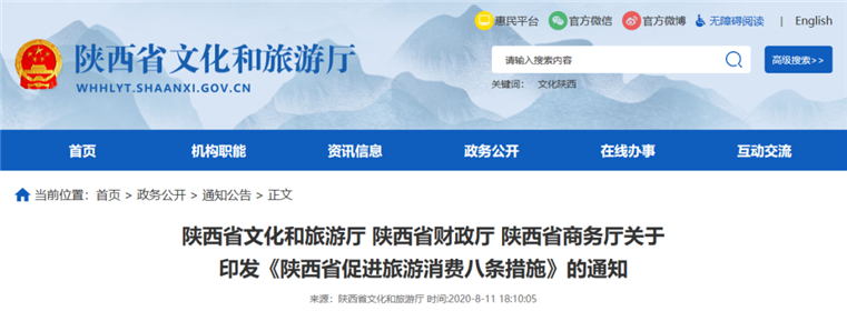 为扎实做好“六稳”工作,落实“六保”任务,按照省委、省政府促进市场消费有关要求,近日,省文化和旅游厅与省财政厅、省商务厅联合印发《陕西省促进旅游消费八条措施》,加快推进全省旅游企业扩大复工复业,促进旅游消费和全省旅游业发展。