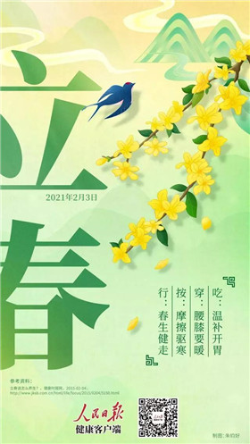 从中医养生保健的角度看,春天是阳气生发的季节,因此立春也是一年中最适合养阳气的时候。身体阳气足,抵抗力才强!身体阳气足,抵抗力才强!广州中医药大学教授、博士生导师梅全喜2020年3月在做客人民日报健康客户端、健康时报主办的《人民名医》直播时表示,春季是大自然气温上升、阳气逐渐旺盛之时,此时养生宜侧重于养阳才能顺应季节变化。春季人体新陈代谢旺盛,阳气升发,与春之阳气相应,根据春天人体阳气生发的特点,中医提出了春季养阳的观点。①那么为何春季要养阳?春天,肝阳上亢的人易头痛、眩晕,这就是我们常说的“春气者,诸病在头”的原因,中医认为,“肾藏精生髓,髓聚而为脑”,所以阳气不足可致使髓海不足,脑失“养分”,就容易出现头晕耳鸣。当人出现反复感冒、手脚经常冰凉,精神气色差,容易犯困……这都是身体在提醒你:阳气不足了。中医有句名言“阳气不到就是病”。北京中医药大学国学院院长张其成2018年在健康时报刊文指出,我国传统医学认为,阳气是生命的能量源,就像自然界的太阳一样,《黄帝内经·素问·生气通天论》说:“阳气者,若天与日,失其所,则折寿而不彰!”如果失去了阳气,人就会没精神,就会短寿,就会生病!②有句古话叫“正气存内,邪不可干”,“正气”就是人体的阳气,也是人体的抵抗力和自愈力。所以阳气越充足,人体越强壮,阳气不足,人就会生病。同时,随着年龄的增长,人的阳气会逐渐亏耗。一些不良生活习惯如过食生冷、经常晚睡、出汗过多也都会耗损阳气,阳气虚会导致人体生理活动减弱和衰退,抵抗力下降,外邪就会趁机侵入人体,就容易患上各种疾病。所以,春季养阳,保护人体阳气,就显得十分重要。春季养阳,记住“三要三不要”一要——饮食温补,要多辛甘在五脏与五味的关系中,酸味入肝,具收敛之性,不利于阳气升发和肝气疏泄,春季阳气初生,宜“减酸增甘”,多食辛甘发散、温补脾胃的食物。温补不宜大鱼大肉,建议多吃些新鲜的蔬菜,比如韭菜,在蔬菜家族中,韭菜是最先崭露头角的,生命力顽强,割了一茬又长一茬,是最典型的应季蔬菜;葱,春天的葱是一年中营养最丰富,也是最嫩、最香、最好吃的时候,喝葱白汤可以益五脏、补气血;大蒜,春天呼吸道和消化道很容易受外界感染,大蒜可杀菌,对心血管健康也很有好处。③二要——春季选茶,要喝花茶春季选茶大有讲究,此时宜喝花茶,因为春季人体阳气的生发需要依赖肝气的疏泄作用,玫瑰花、茉莉花等花茶有疏肝理气的功效,有助于舒达肝气、调和气血。可取玫瑰花1克,茉莉花1克,红茶3克,冰糖适量。一同放入茶碗,加入沸水,加盖3~5分钟即成。④三要——春季养阳,要晒太阳有一个非常简单且经济的养阳方法,那就是多晒太阳。《老老恒言》就有“日清风定,就南窗下,背日光而坐”的说法。之所以“背日光”是因为背部有督脉。督脉有“阳脉之海”之称,总督一身之阳气。把背晒热、晒舒服了,人体的阳气也就充足了。晒太阳的时间最好选在上午10~11点之间,此时阳光比较充足,光线也比较柔和。晒太阳的效果最好。此外,不建议隔着玻璃晒太阳,因为很难达到应有的效果。⑤一不要——衣服不要“脱太快”立春之后,虽然从节气上来说已经进入到了春天,但这个时候乍暖还寒、气候多变,和真正意义上的春暖花开至少还差有两个节气,适度“春捂”是顺应阳气升发的养生需要。所以不要瞬间将厚衣物脱掉。此外,需要注意的是,人体下半部血液循环比上半部差,易受风寒侵袭,故寒多自下而生,因此春季穿衣应注意“下厚上薄”,保养阳气,增强抵抗力,有效预防多种传染性疾病。③二不要——运动不要“太剧烈”立春后天气乍暖还寒,气温忽高忽低,有时候早晨过于冷,如果想锻炼,可以选择在早晨的十点和下午的四点左右。注意,运动前必须做准备活动,不要进行激烈运动,否则会使经过冬天严酷气候而变得脆弱的器官更容易受损,应该选择轻柔和缓的运动项目,比如快走、慢跑、踏青等。让身体逐渐适应。三不要——情绪不要“太波动”春天人体内阳气渐升,向外发散,表现出来就是春心萌动,得不到释怀的时候,往往会伤春。如果出现忧郁、情绪波动、多愁善感,要格外注意,可能是体内阴气偏盛,抑制了阳气的升发,如果不能及时调节,很容易出现抑郁症或精神问题。遇到不顺心的事,换个角度想想,也可以把事放一放,找些其他事情做,可以和朋友一起出去走走、爬山等,感受大自然的情怀,避免在家里呆着老想事、钻牛角尖。