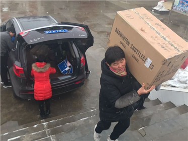 杨蕾副校长一行,冒着风雪,一路颠簸,风尘仆仆,为二小的孩子送来羽毛球拍、乒乓球拍、跳绳等体育用品,让二小学生在寒冷冬日感受暖暖温情。