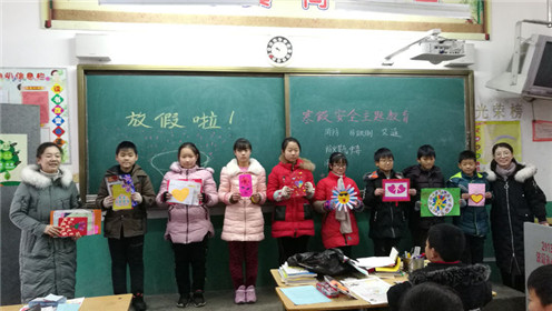 杨蕾副校长、卫静副校长还走进教室,给二小学生送上黄小学生制作的贺卡,为二小学生送上新年祝福。