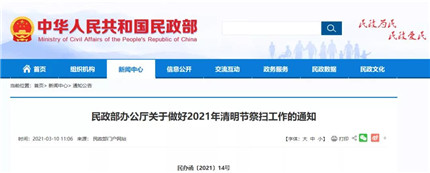 清明节是缅怀先辈、寄托哀思的时节关于清明节祭扫有最新消息3月10日民政部办公厅发布《关于做好2021年清明节祭扫工作的通知》
