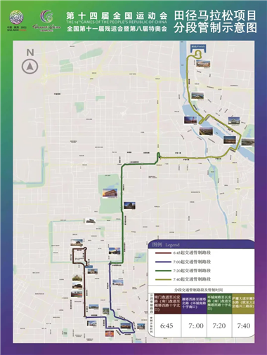 中华人民共和国第十四届全国运动会暨全国第十一届残疾人运动会(以下简称“十四运会和残运会”)田径马拉松项目比赛将于2021年9月26日在我市举行,起点设在南门盘道,终点设在西安奥体中心田径场。