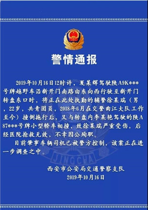 痛心!今天中午曲江发生车祸,西安22岁交警被撞倒拖行后殉职