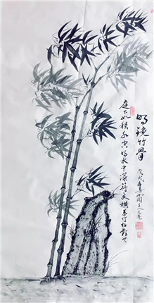 竹,风骨也。君子,天行健,以自强不息。君子如竹,精神硬如磐石,脊梁不屈如山脊。秦文亮的绘画作品得到梅生大师真传,竹画生动,形神兼备,坚劲挺拔,气势冲霄,身躯虽纤弱,却不为劲风所摧,始终坚韧挺拔,傲然直立。