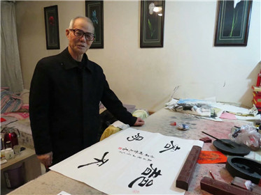 程启民老师在工作室创作书法作品