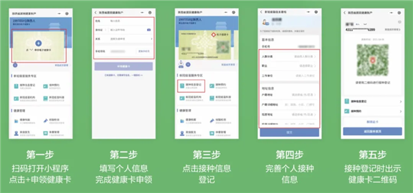 据“健康陕西公众服务”微信公众号消息,目前陕西省新冠疫苗大量到货,各区域已全面启动新冠疫苗全民免费接种,居民在前往接种点前只需打开“健康陕西公众服务”小程序的“接种信息登记”完成登记,并在接种点出示健康卡二维码核验信息即可快速接种,减少等待、减少接触、提高效率。