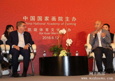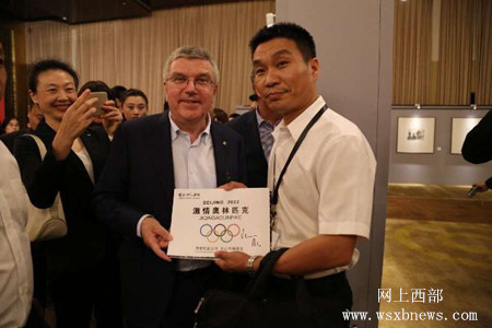 晚间9时,国际奥委会主席巴赫在北京北辰洲际酒店参观了范扬、吕俊杰两位艺术家的作品展。