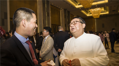 崔国卫(左)和三宝双喜集团董事局主席沙鹏程(右)在韩国国庆日招待会上