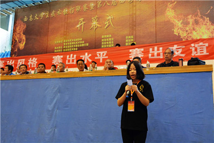 上午9点,联赛开幕式正式开始,伴随着运动员进行曲,八名英姿飒爽的旗手护送着国旗、会旗庄严入场,中央电视台武林大会现场解说、传统武术名家朱永金老师和武林新秀王卓欣主持开幕式盛况。裁判员、运动员入场仪式后,全体起立,奏响雄壮的义勇军进行曲。国际武术联合会执委、国家武术散打队、套路对总领队、西安市武术协会主席田苏辉先生;西安市莲湖区文化体育局副局长张雄飞先生;陕西省武术协会副秘书长兼办公室主任杨晓波先生;西安市武术协会常务副主席方秀敏先生;西安市武术协会副主席、西安高校武术联合会负责人刘永强先生;西安市武术协会副主席、莲湖区武术协会主席高建武先生;陕西省武术协会副主席、西北武术院院长韩鹏先生;未央区武术协会主席何来生先生;西安散打搏击总会会长杨克俭先生;红拳名家杨友三、武清江先生、靳根省先生;西安高校散打比赛发起人郭晓飞先生,西安高校武术联合会散打部部长、本次联赛发起人武勇军先生以及本次联赛形象大使、“草原苍狼”敖特根•巴特尔先生等领导和嘉宾莅临现场,共享盛况。