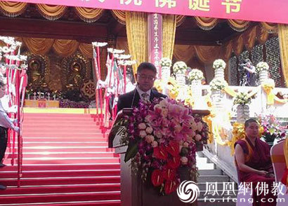 原国家宗教事务局副局长陈宗荣宣读贺信(图片来源:凤凰网佛教)