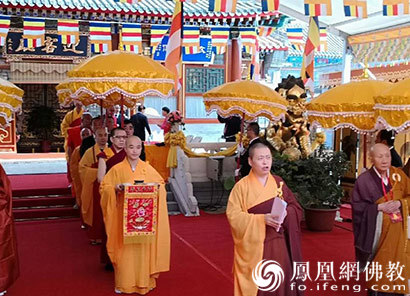 迎请主法高僧入场(图片来源:凤凰网佛教)