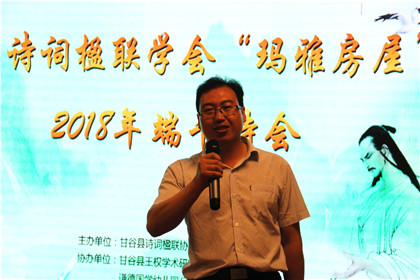 (本网讯)6月15日上午,甘肃省甘谷县诗词楹联学会“玛雅房屋杯”2018端午诗会在甘谷叶茂大酒店成功举行。