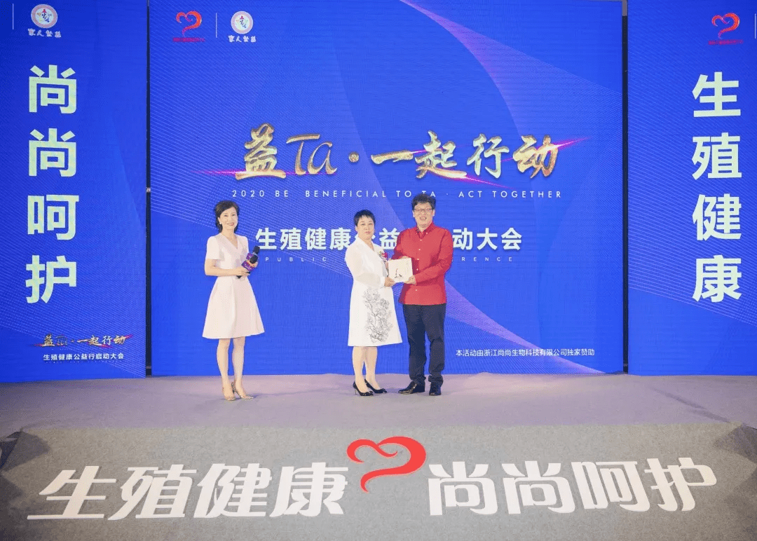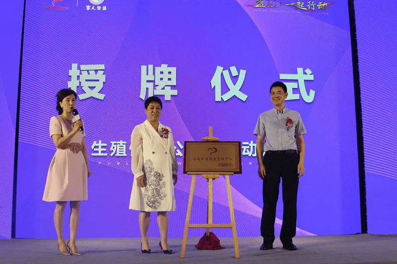 在全体与会人员的见证下,萧山区卫健局党委书记、局长申晓辉和家人公益组织联盟会长邵海燕共同为尚尚生殖管理中心揭牌