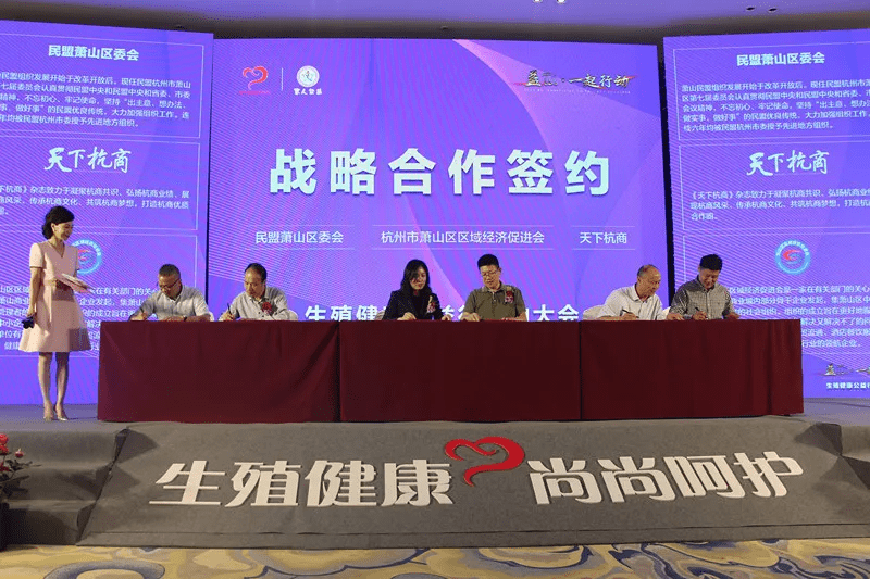 专家访谈结束后,家人公益组织联盟·尚尚生殖健康管理中心还分别与民盟萧山区委会、萧山区区域经济促进会、天下杭商、微医全科、萧山区抗癌协会、浙江博方律师事务所等6家单位举行了战略合作签约仪