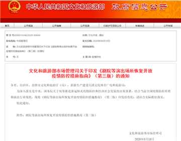 为深入落实党中央、国务院关于统筹推进新冠肺炎疫情防控和经济社会发展的决策部署,结合当前全国疫情防控形势和演出行业现状,现将《剧院等演出场所恢复开放疫情防控措施指南》(第三版)印发给你们,请结合实际抓好落实。