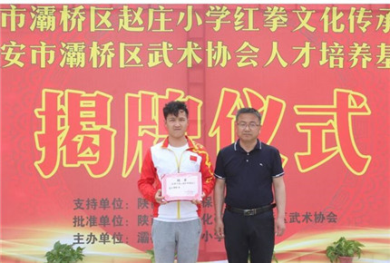 2021年5月14日上午10点,陕西红拳文化研究会“红拳传承基地”授牌仪式在赵庄小学操场成功举行。陕西红拳文化研究会会长邵智勇,西安市灞桥区武术协会主席文博,西安市灞桥区武术协会副主席吕利利,西安市灞桥区武术协会秘书长刘政拾,赵庄小学校长刘文平等领导和嘉宾参加了此次授牌仪式。