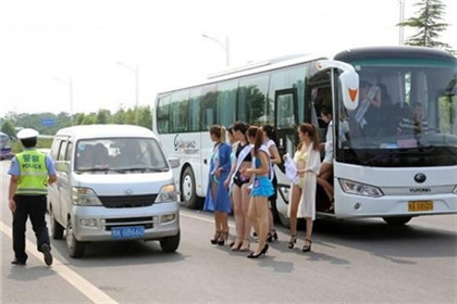 环球小姐郑州参赛遇堵车 穿比基尼暴走公路T台