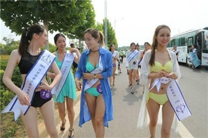中午11点左右,在距离活动现场约一公里处遭遇严重堵车,美女们为了不耽误比赛,无奈弃车前行,公路瞬间成为“T”台,大家身穿泳衣、脚踩高跟鞋在烈日下“裸奔”,火辣身材吸引了众人的围观拍照。