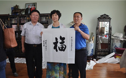 并由白云涛主任、王淑英教授、童玲女士、王凤海教授、向荣主任及平遥文联赵永平主席一起为首批国家级艺术人才库推荐基地---平遥白石画院举行了揭牌仪式,随后进行了书画笔会,童玲女士还为白石画院书写了《福》字墨宝,并收藏了白石画院院长赵贵明的墨虾图。同时大家一起观看了赵贵明艺术馆及白石画院群星闪光画展!