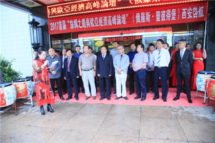 上午9时16分,西安秦都酒店广场“丝绸之路起点”纪念碑前,一阵热烈激昂的锣鼓声吸引了不少过往市民顿足观望。随着主持人宣布,第四届“迎接欧亚挑战”暨首届“丝绸之路与欧亚经济高峰论坛”西安启航仪式在此隆重启幕。