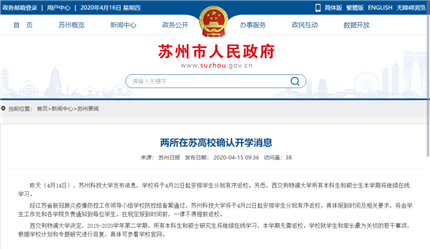 据苏州市人民政府官网4月15日消息,西交利物浦大学决定,2019-2020学年第二学期,所有本科生和硕士研究生将继续在线学习,本学期无需返校。