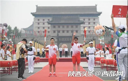 今天(8月16日)上午,中华人民共和国第十四届全国运动会和第十一届残疾人运动会暨第八届特殊奥林匹克运动会火炬传递点火起跑仪式在西安市永宁门广场举行。